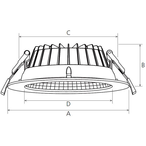 | Code | Wattage | CCT (K) | A (Ø) | B | C (Ø) | UGR |